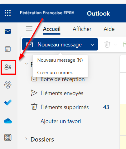 Cliquez sur l’icône Contact/Personnes/People dans la colonne la plus à gauche