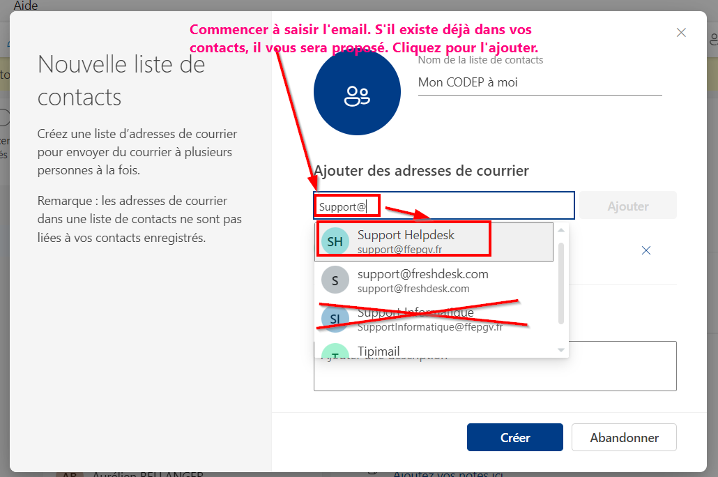 Si l’email n’existe pas dans vos contacte, vous pouvez le rentrer.