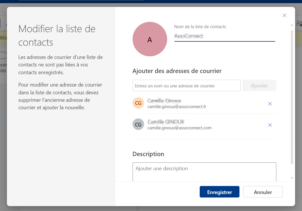 Vous pouvez ensuite revenir sur la liste de contact et la modifier :