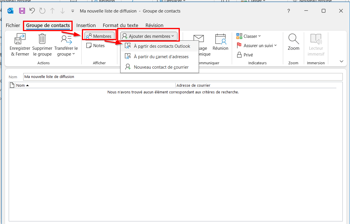 Il ne reste plus qu’à cliquer sur le bouton Créer pour créer votre nouvelle liste de contacts.